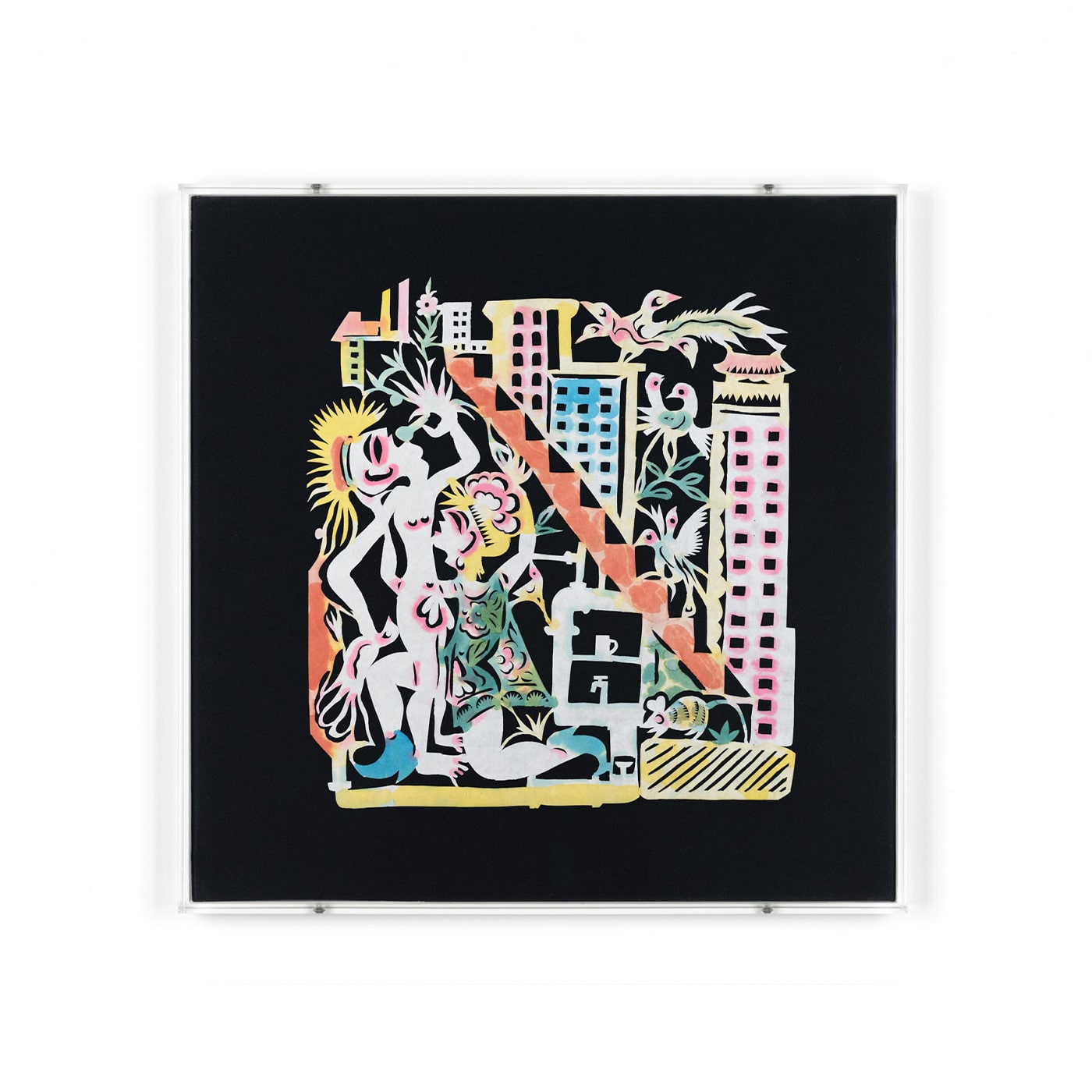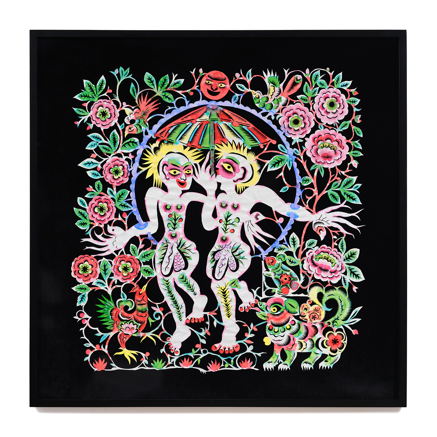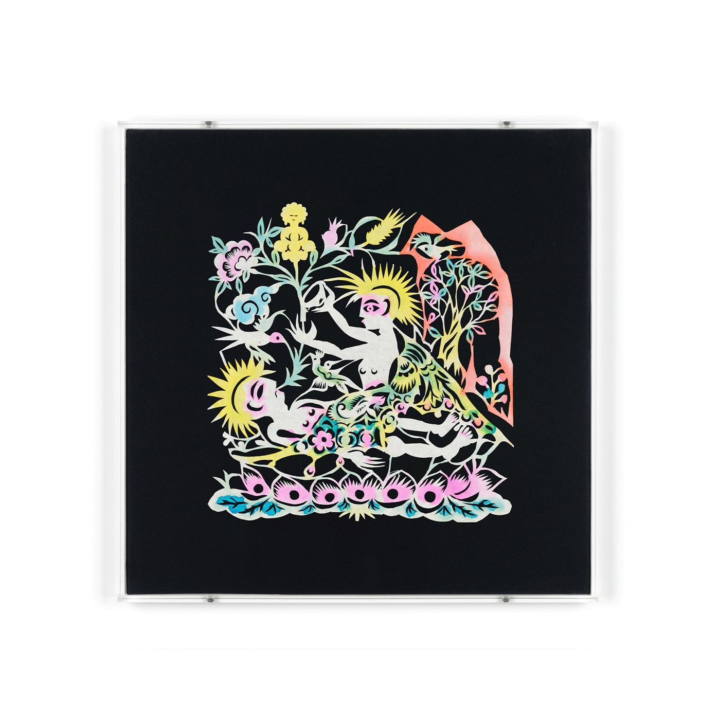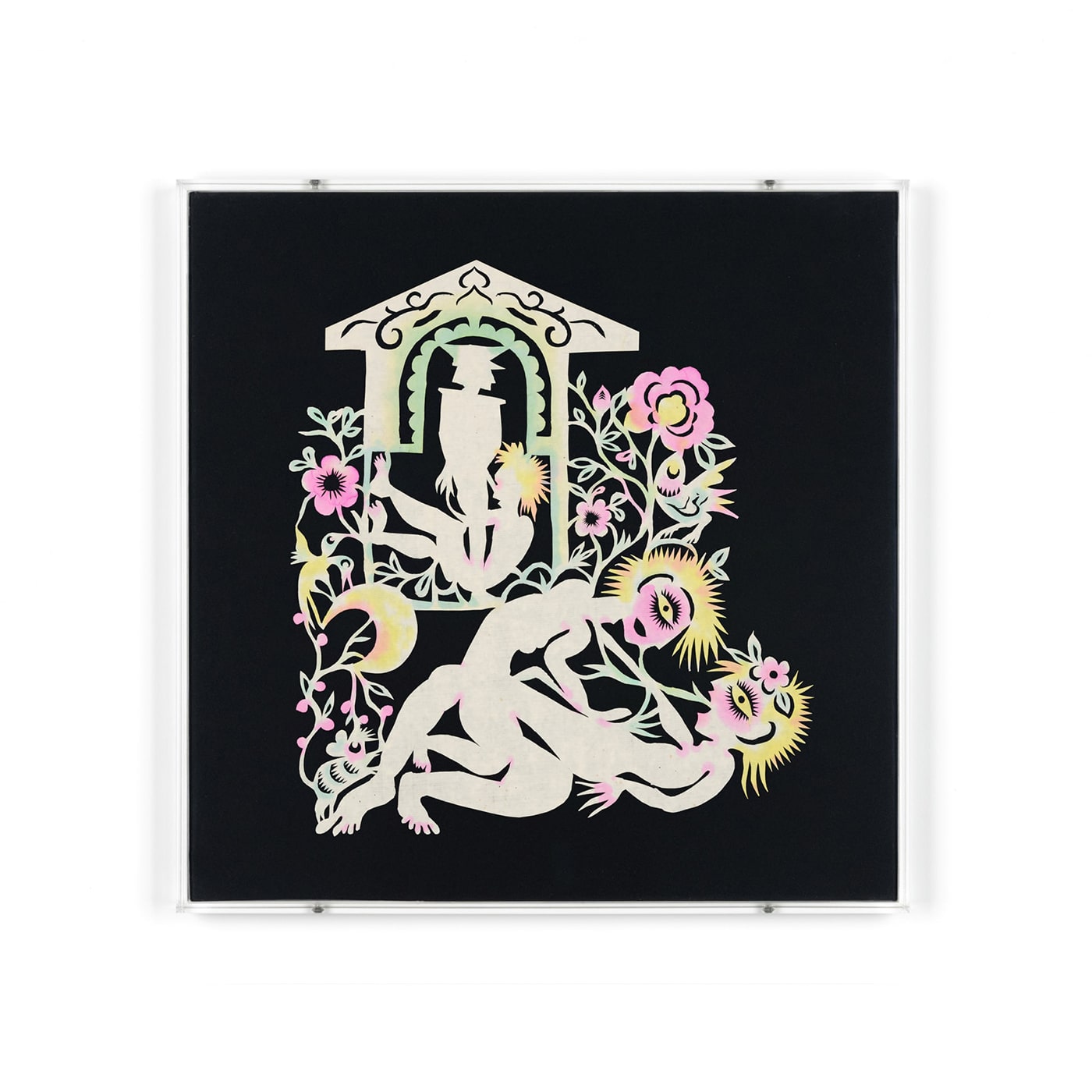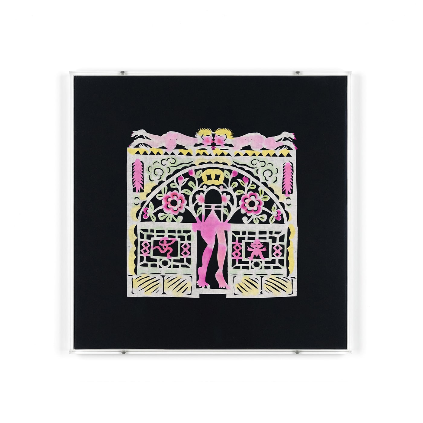 Xiyadie is a self-taught traditional Chinese papercut artist whose works narrate his journey of transformation and homoerotic fantasies. Xiyadie means Siberian Butterfly, a name he chose after his move to Beijing as a migrant worker in 2005, where he found an accepting community in the burgeoning gay subcultural scene. As he relates, the Siberian Butterfly is a northern creature. Surviving in the harshest conditions, it maintains its vanity and pursuit of freedom in an environment that does not lend political agency or representation to queer-identifying people.