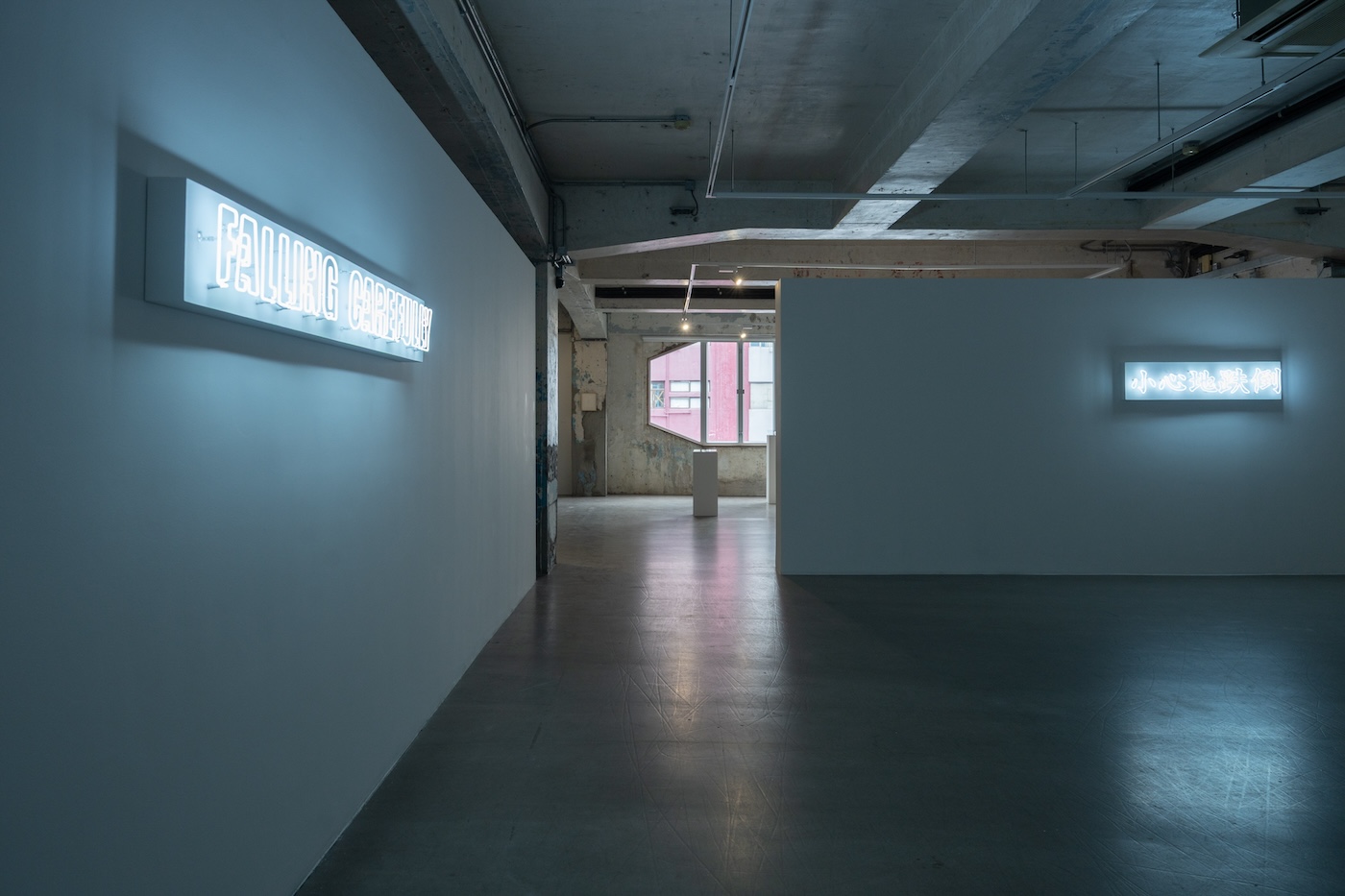 “carefully” acknowledges precarity while embodying a gesture of care. It proposes solidarity as a way to heal and to move forward from traumas. The new works featured in the exhibition continue themes Chong explored in his video installation and performance, Falling Reversely (2021/2024), presented at the 60th Venice Biennale, reflecting upon the fragility and resistance of the body in the face of systemic violence. In “carefully”, Chong probes our attentiveness to the past by drawing from his upbringing in colonial Hong Kong, contemplating what we choose to remember and its influence on identity and the present. Through neon lights, glass sculptures, drawings, prints and video, the exhibition invites us to reflect upon our shared humanity converging temporalities, and to imagine an alternative microcosm of human relationality through mutual support and understanding.